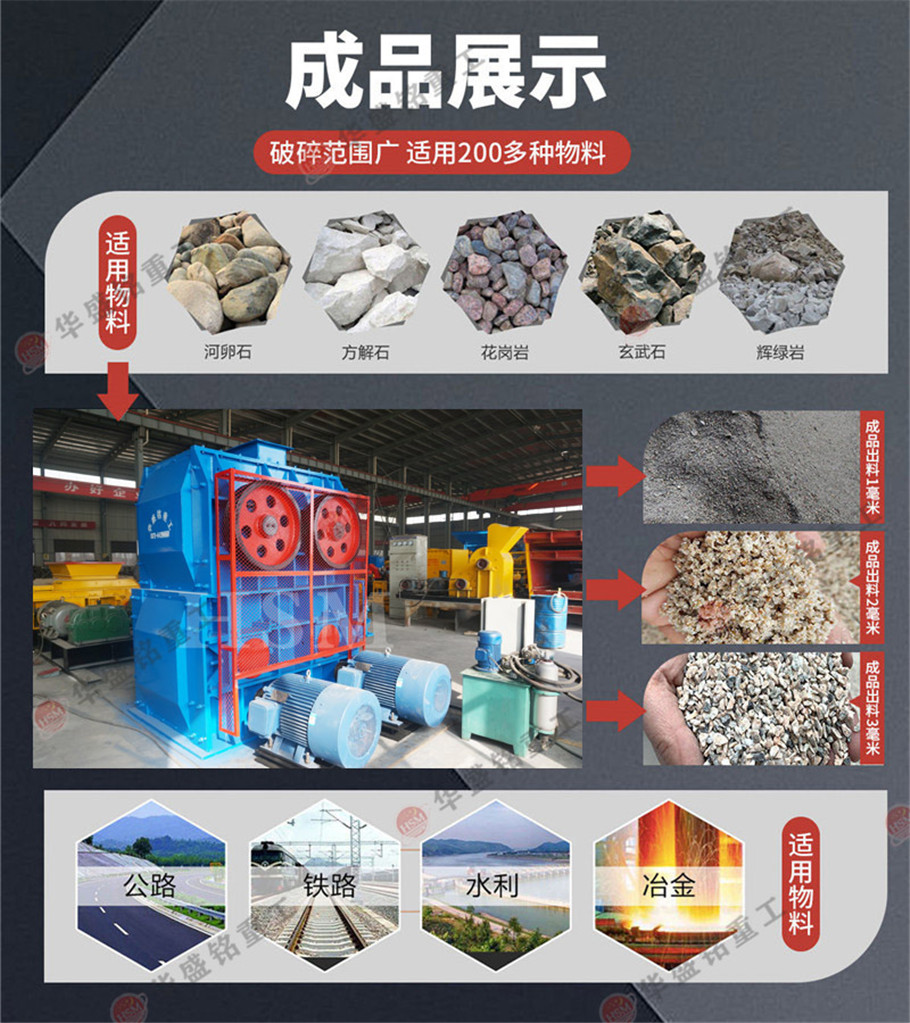 应用领域:适用于抗压强度小于200Mpa、湿度小于30%的硬、中硬物料的细碎作业